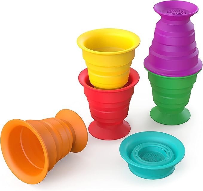 - Open-Ended Play: Featuring 6 collapsible cups in delightful colors, your little one can stick, stack, and squish these cups, sparking creativity and curiosity in every play session.