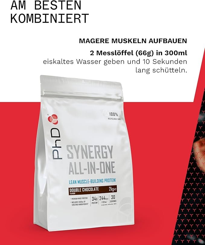Elevate your post-workout routine with PhD Nutrition Synergy All-In-One Lean Protein Powder in indulgent Double Chocolate flavour. This premium protein blend is meticulously designed to support lean muscle growth and maintenance, making it an ideal choice for fitness enthusiasts.