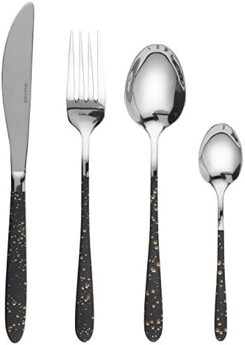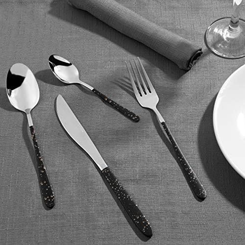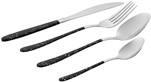- Stunning MarbleGold Design: The sleek black handles with unique gold speckle detailing create a sophisticated and modern look, making this cutlery set a beautiful addition to any dining table.